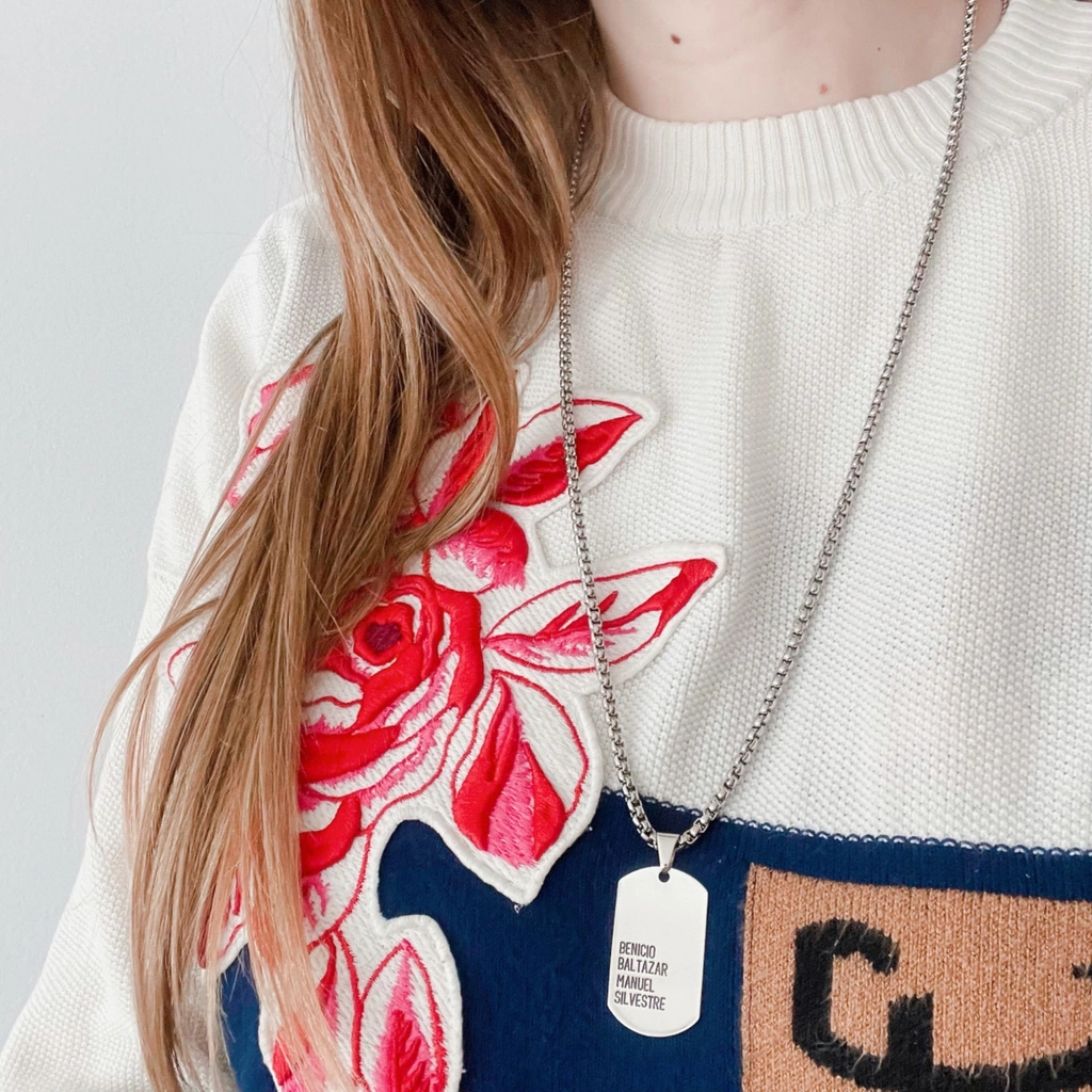 2- Podés elegir la pieza sin grabar, o con grabados. La cadena del collar mide 70 cm de largo y es de acero quirúrgico 100% hipoalargénico.