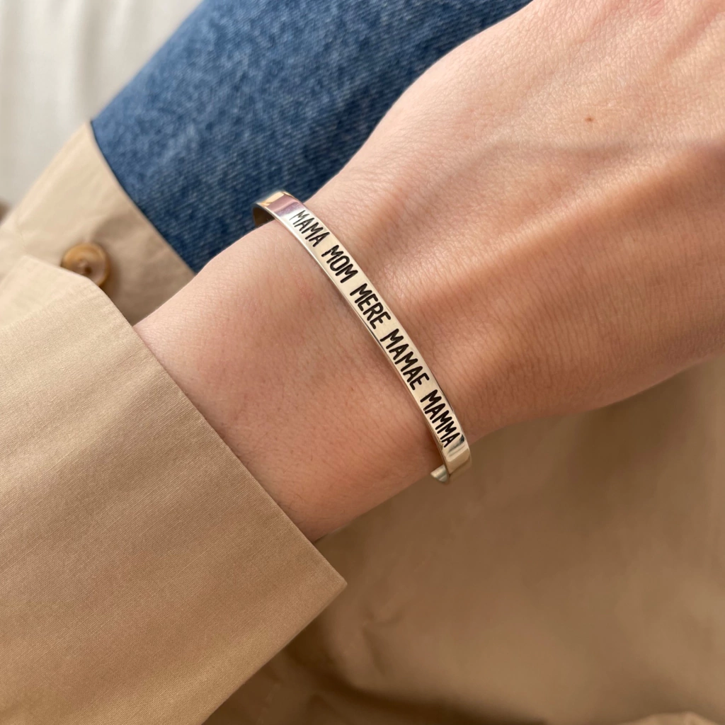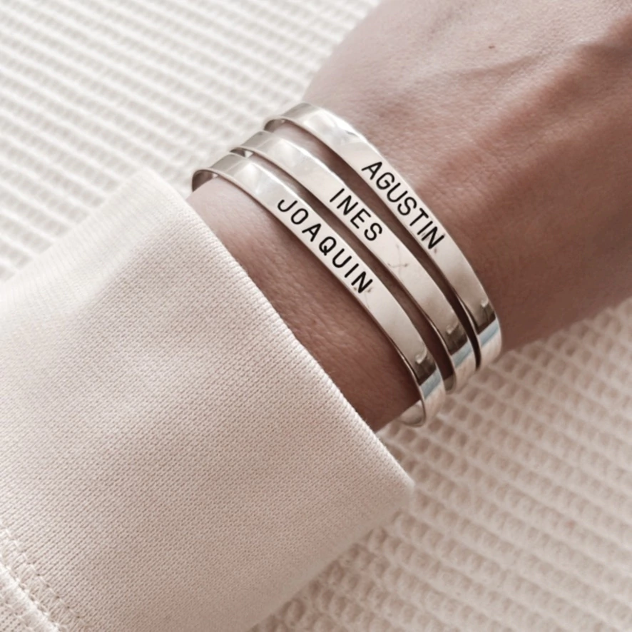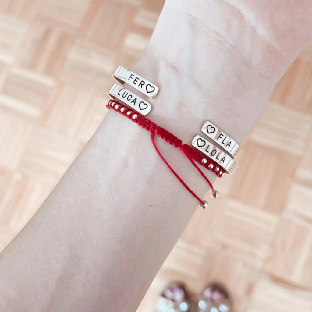 1- Nuestra Esclava Cerca finita tiene 6mm de ancho, 1 mm de espesor, 16 cm de longitud total y está hecha artesanalmente. Si elegís agregarle el grabado, tené en cuenta que tiene un costo adicional por nombre. Cada grabado corresponde a un nombre/ fecha/ símbolo.