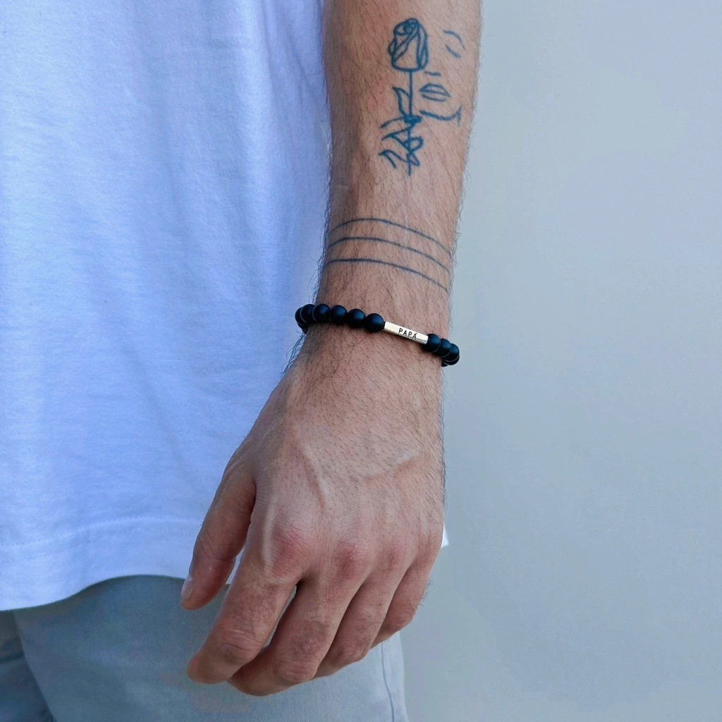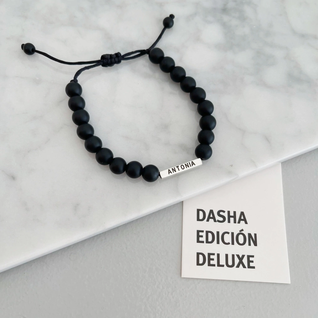 1- Nuestra pulsera Inseparable está hecha artesanalmente. Tiene bolitas de Ónix opaco y en los terminales, Ónix pulido. Son ajustables.